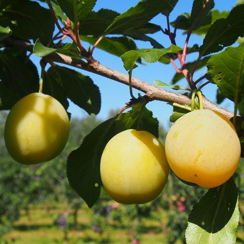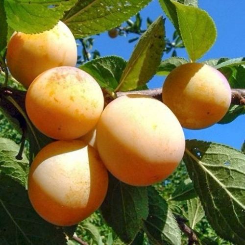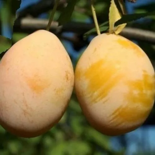 - Округло-овальной, с небольшим брюшным швом, формы, зеленовато-жёлтого или светло-жёлтого, с оранжевым покровом, цвета, покрыты белёсым налётом. Кожица тонкая, матовая. Мякоть приятная и сочная, плотная, зеленовато-жёлтого цвета. Косточка овальной формы, легко извлекается;